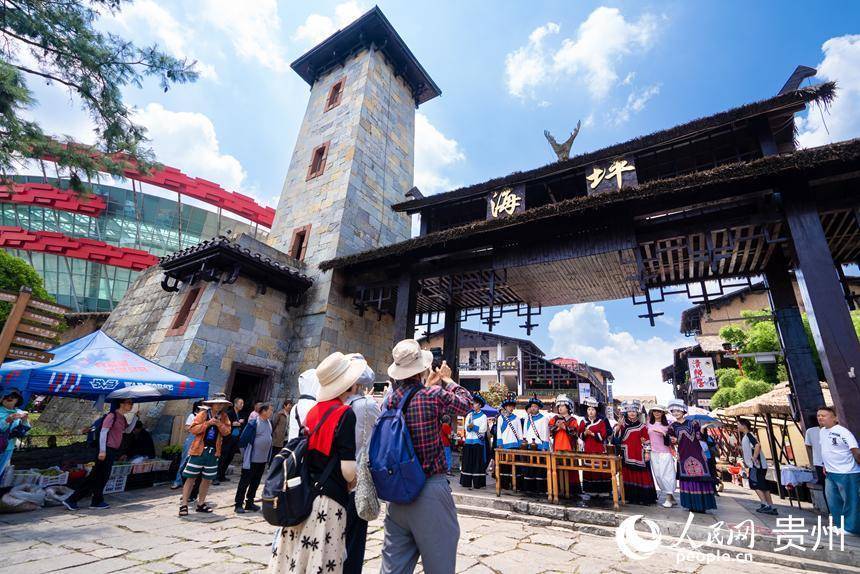 游客在景区内的海坪彝族特色旅游度假小镇参观游览。人民网记者 涂敏摄